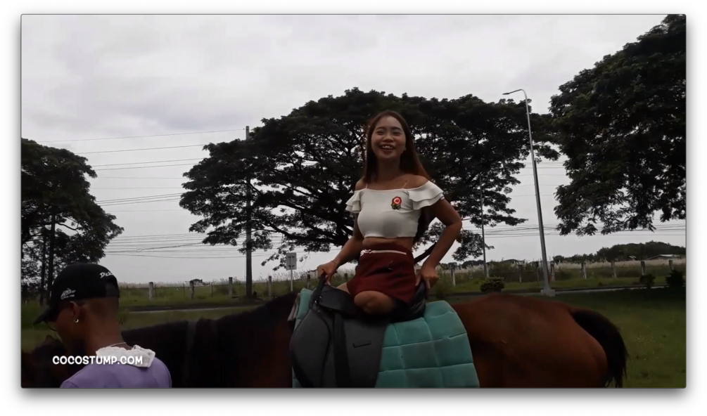 Get stunning stump views of Janins tiny stump while she is getting on a horse and while she is riding. It is obvious the she has a lot of fun riding a horse. Enjoy this great video.