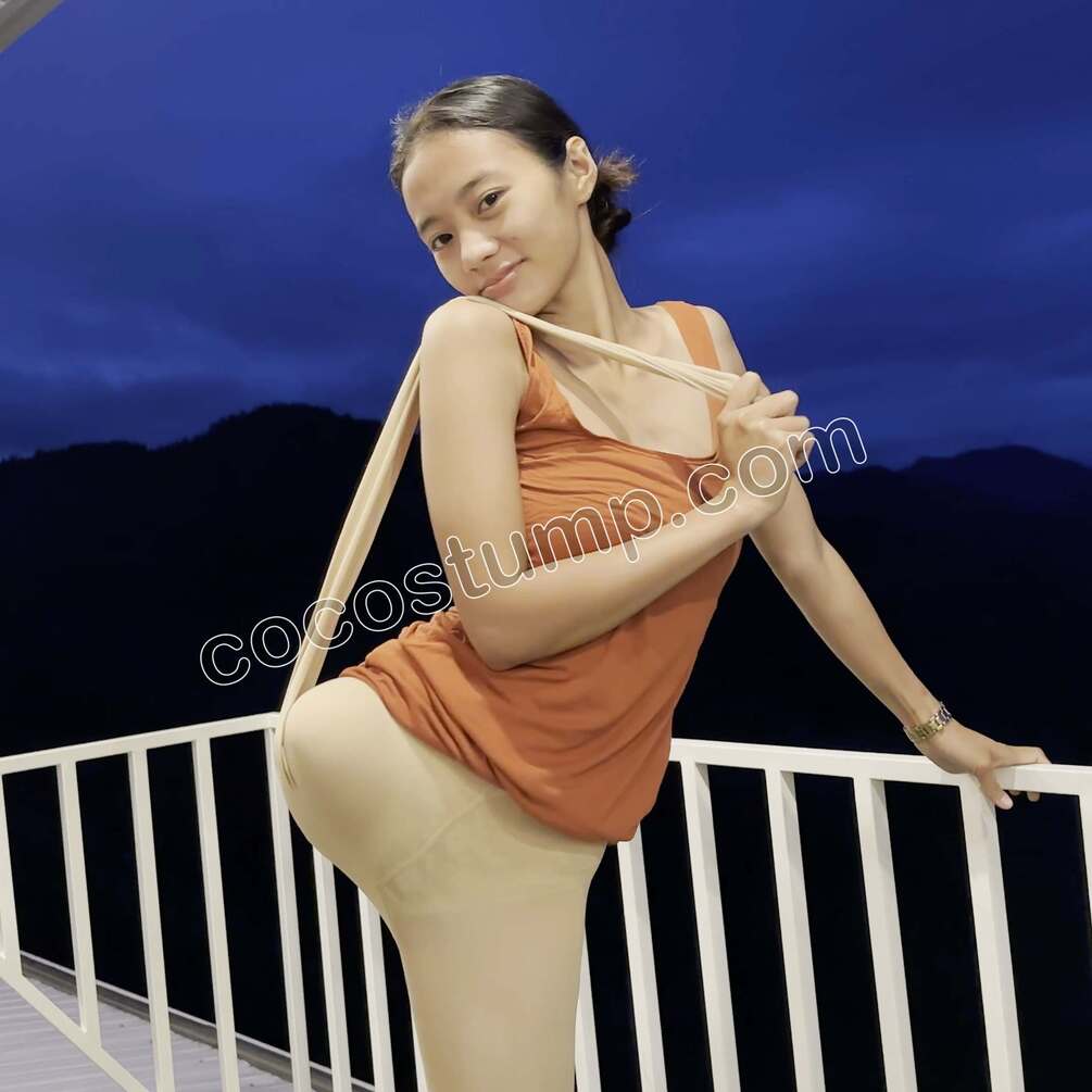 Watch fantastic Cathy high RAK putting on a pair of nylon stockings and a high heel. Cathy is posing on the balcony any playing with the empty leg of the stockings. Very sexy Cathy video.