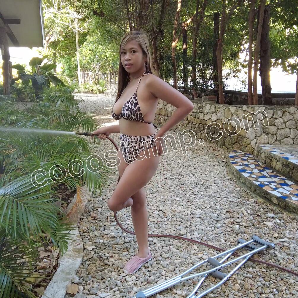 Watch beautiful Hanabi, wearing a nice bikini. Hanabi is crutching, watering the plants and posing. Fantastic new Hanabi video.