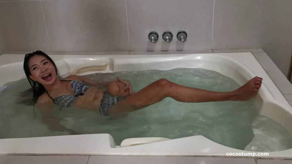 Watch lovely Janin taking a bath. Great poses, and wonderful stump views. Cute Janin and cute stump.
