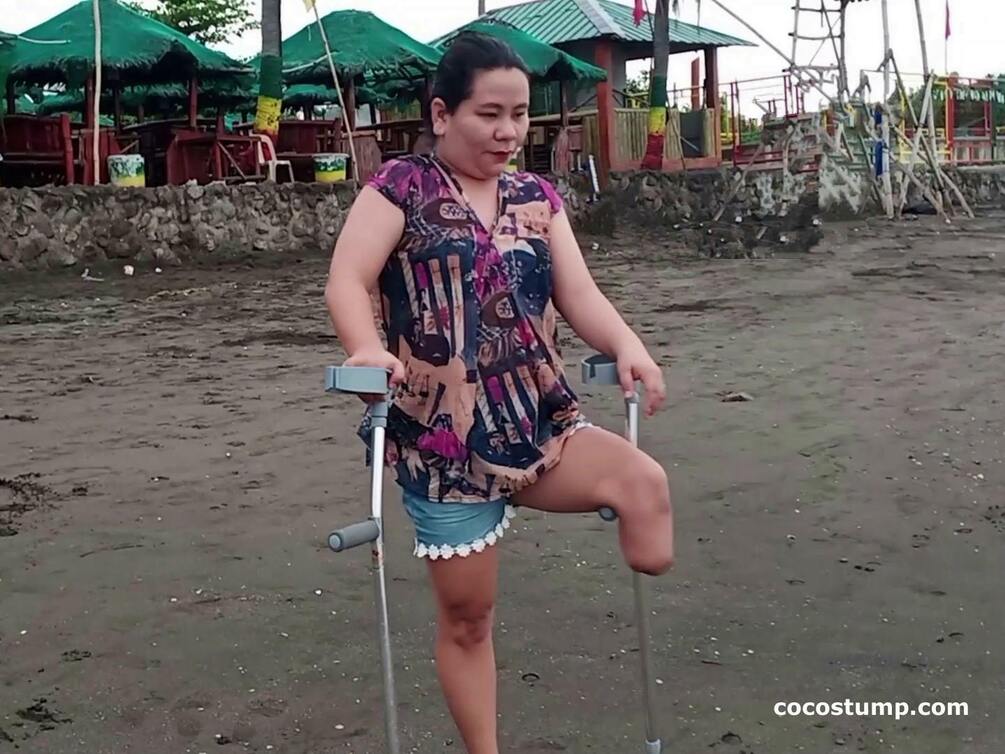 Watch lovely Mia LBK crutching at the beach. Nice stump views. Lots of crutching.