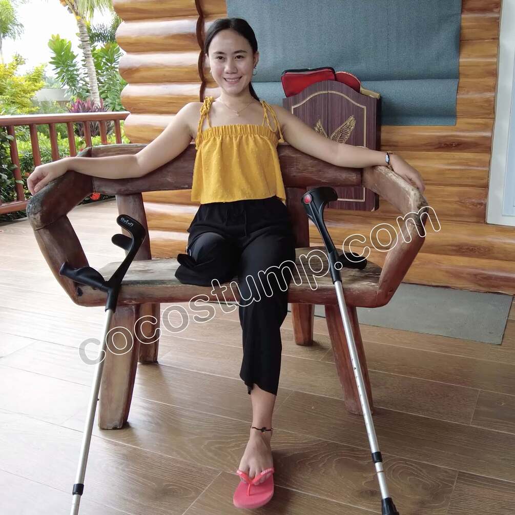 Watch beautiful Vanessa, waving a black pair of trousers. Vanessa is crutching and dancing, both with empty pant leg fold up and flapping. Great Vanessa video.